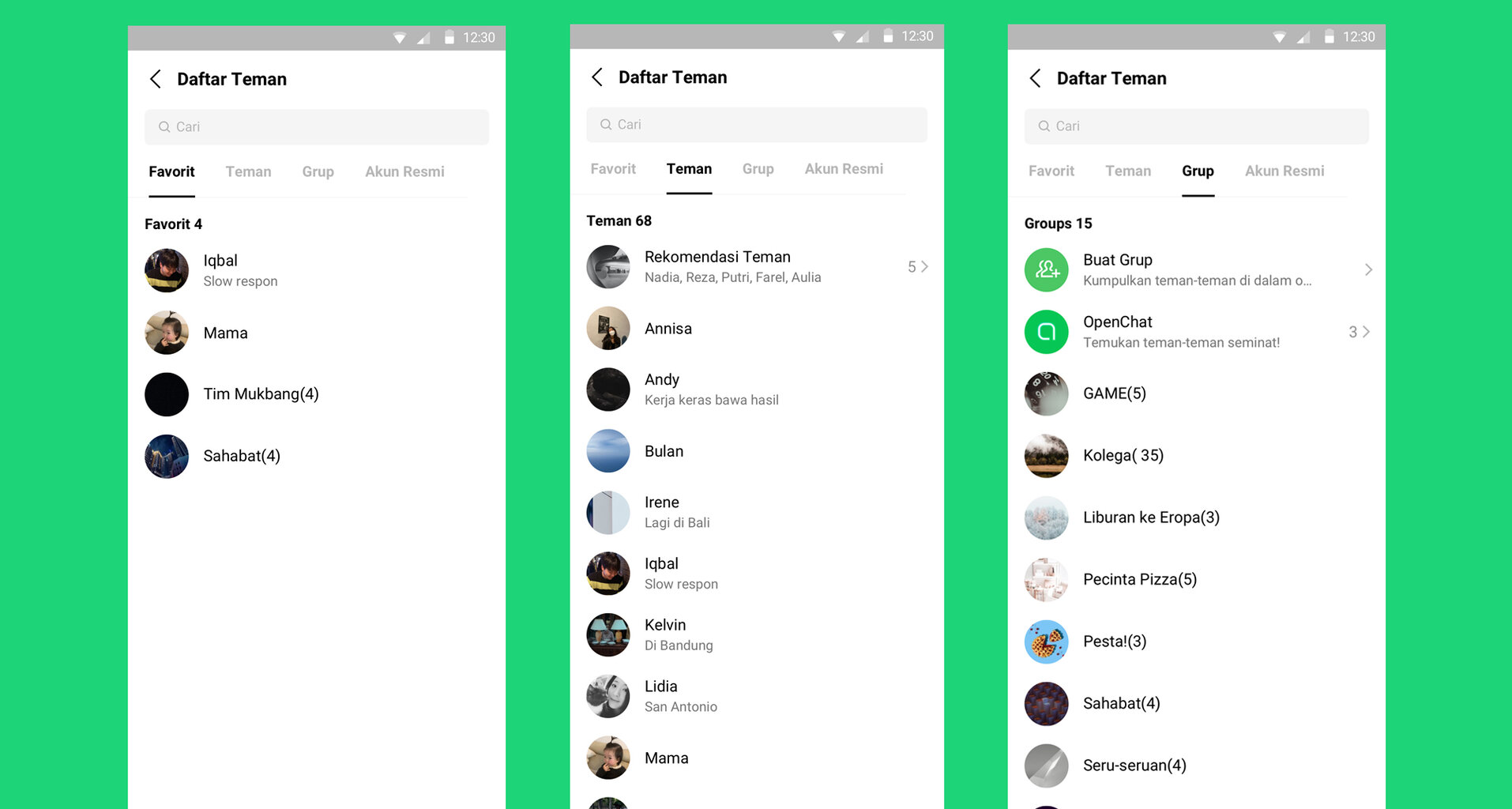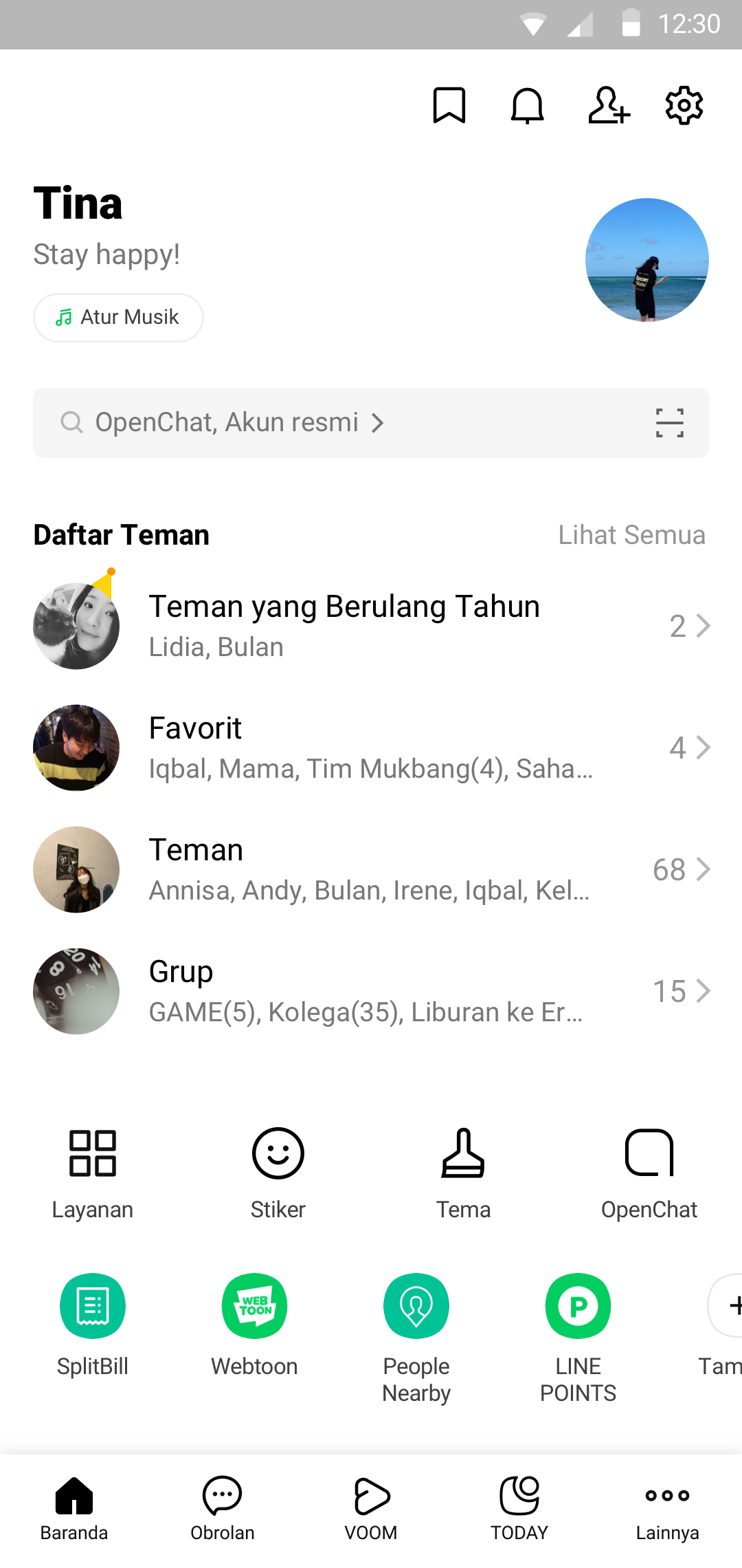 Kini, lebih mudah mencari teman sekarang dengan daftar teman baru. Ketuk "Lihat semua" dan Anda akan melihat teman Anda diklasifikasikan ke dalam empat kategori, favorit, teman, grup, dan akun resmi.