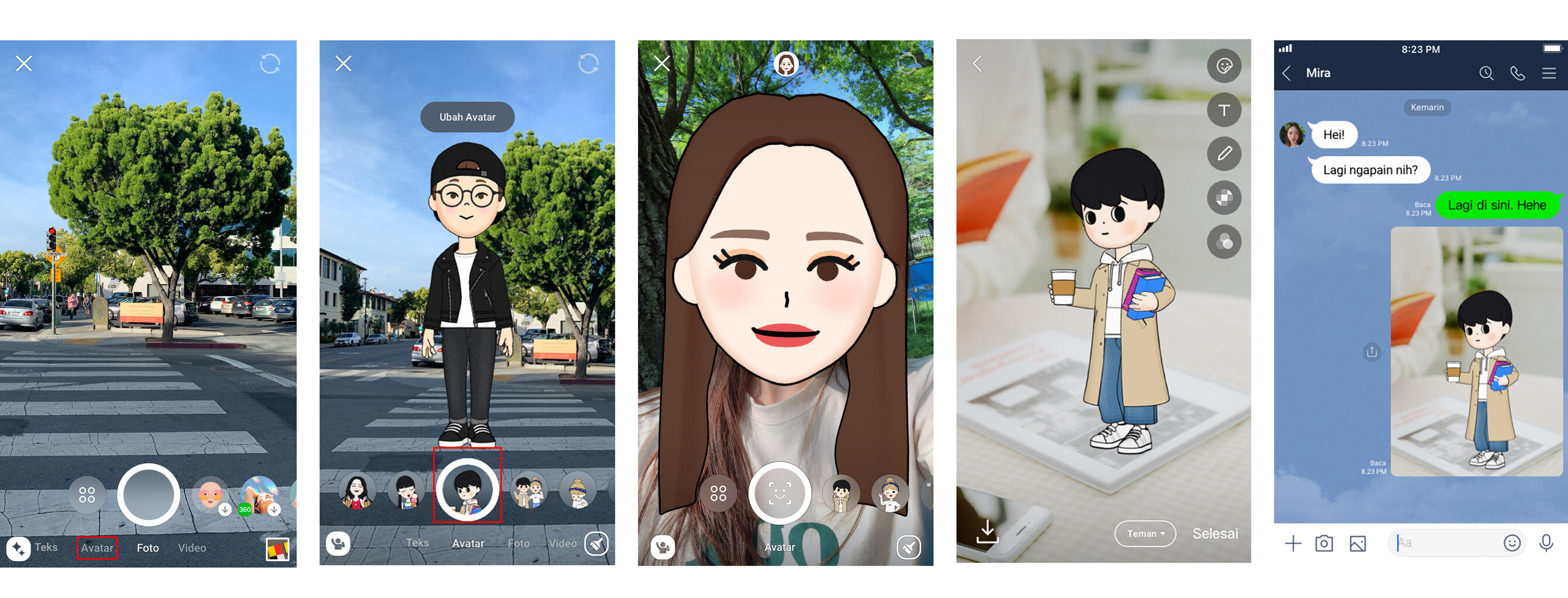 Melalui pilihan ini, pengguna juga bisa mengubah hanya bagian wajah mereka menjadi Avatar saat mengambil foto. Foto-foto yang diambil dengan Avatar pun bisa dibagikan ke teman mereka di LINE.