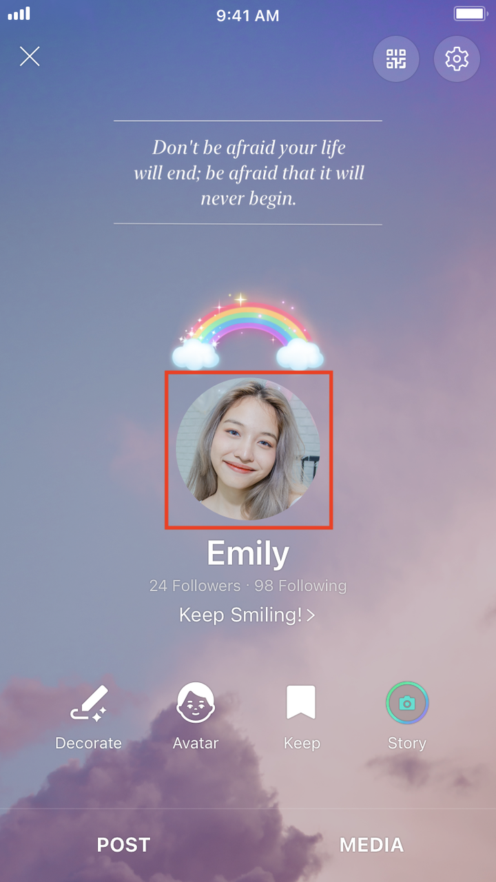 Kamu juga bisa menggunakan Avatar sebagai foto profil LINE kamu dan menempatkannya di profil home page.