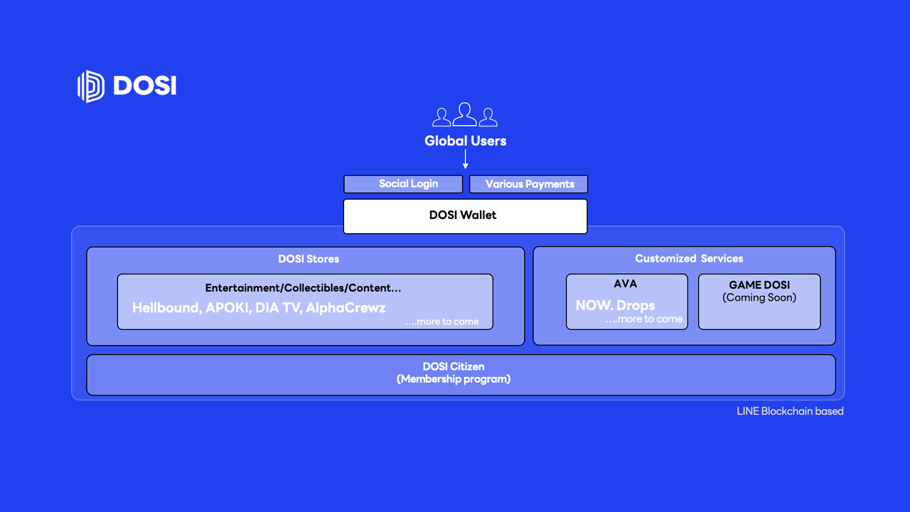 Agar dapat menggunakan DOSI, pengguna bisa mendaftar DOSI Wallet dan login dengan menggunakan akun sosial media yang mereka miliki, termasuk LINE, Facebook, dan Google. DOSI Wallet menawarkan rangkaian metode pembayaran yang ramah pengguna, seperti kartu kredit dan layanan pembayaran mobile seperti Naver Pay (di Korea), semuanya tanpa ada biaya komisi apa pun untuk membuat atau mencetak NFT (mata uang kripto dijadwalkan sebagai metode pembayaran tambahan nanti). Setelah pengguna membuat DOSI Wallet, mereka akan mendapatkan PFP (foto profil) NFT yang unik yang digunakan untuk DOSI Citizen, program keanggotaan berbasis NFT. Dengan menjadi DOSI Citizen maka mereka akan mendapatkan kesempatan agar dapat berkembang bersama di dalam ekosistem DOSI sebagai kontributor.