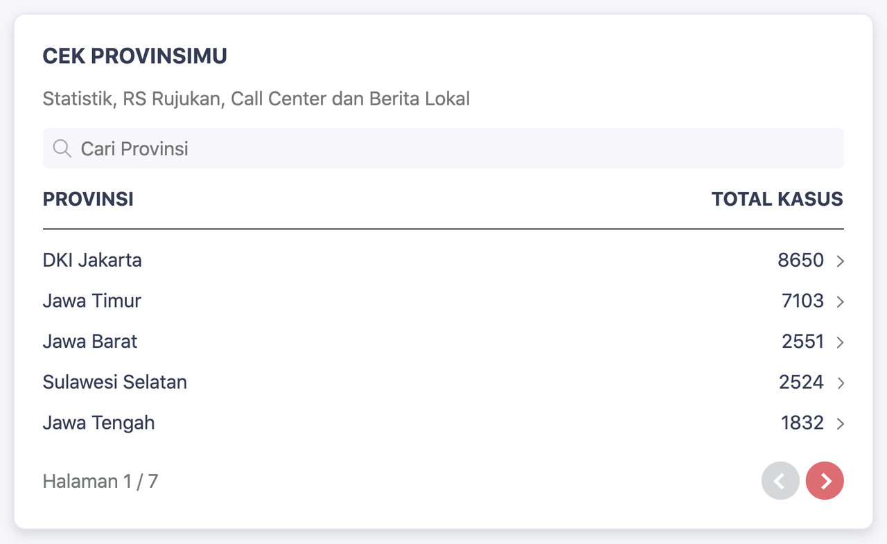Saat membuka situs LINE Siaga, pengguna akan langsung disajikan informasi perkembangan kasus Covid-19 di Indonesia yang menyediakan empat menu utama, yakni jumlah Terkonfirmasi, Sembuh, Dirawat, dan Meninggal Dunia. Angka-angka tersebut juga dilengkapi dengan jumlah kenaikan sehingga pengguna bisa melihat data statistik terkait perubahannya setiap hari. Di bawah menu utama ini, pengguna bisa melihat angka terbaru perkembangan kasus per provinsi. Untuk melihat lebih detail, pengguna tinggal mengklik tanda panah di provinsi masing-masing.