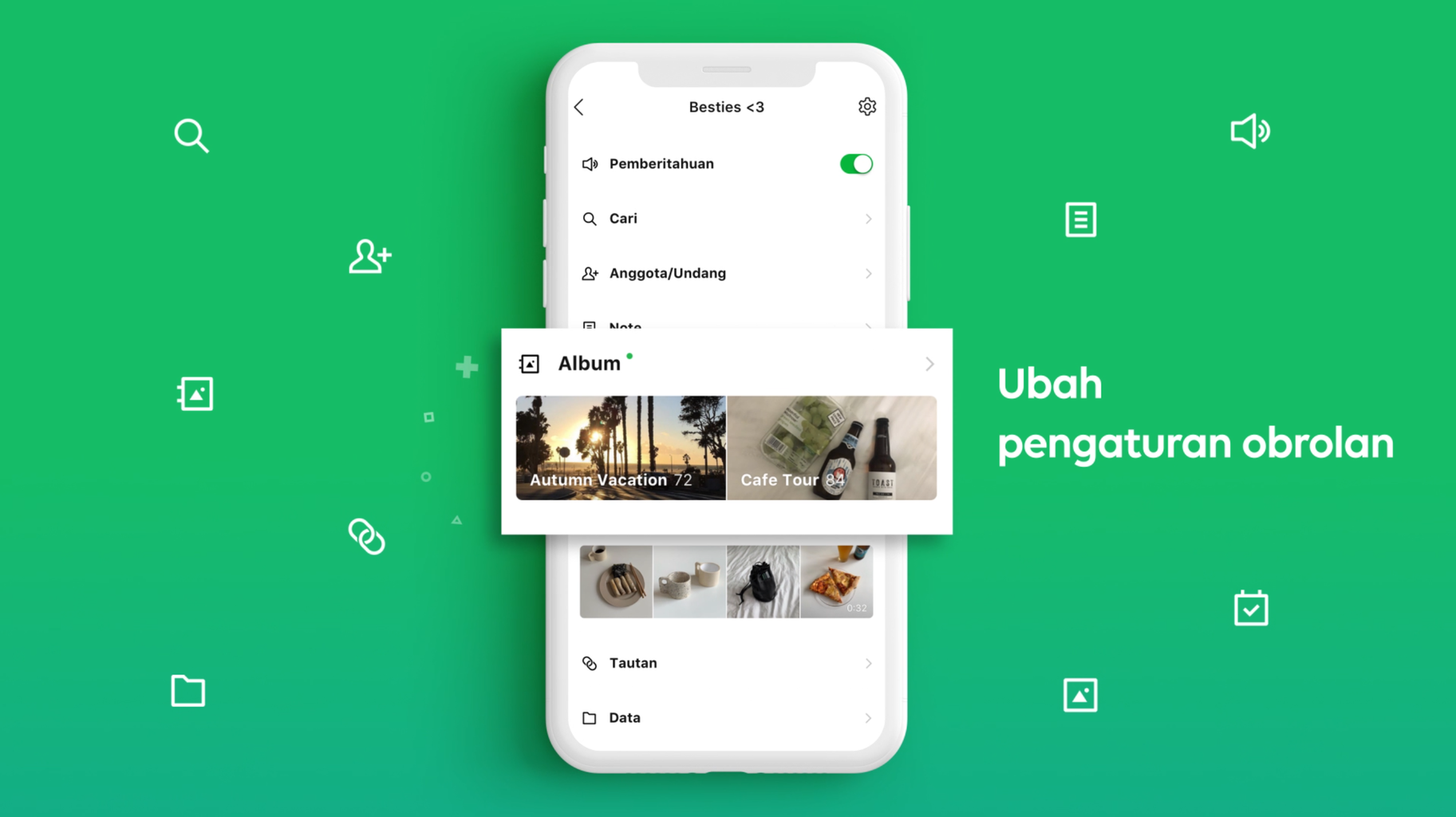 Menu obrolan sekarang jauh lebih mudah untuk menggunakan fitur dan melihat foto, album, dan lainnya! Khusus untuk pengguna Android, silakan lihat detail dari apa yang diubah.