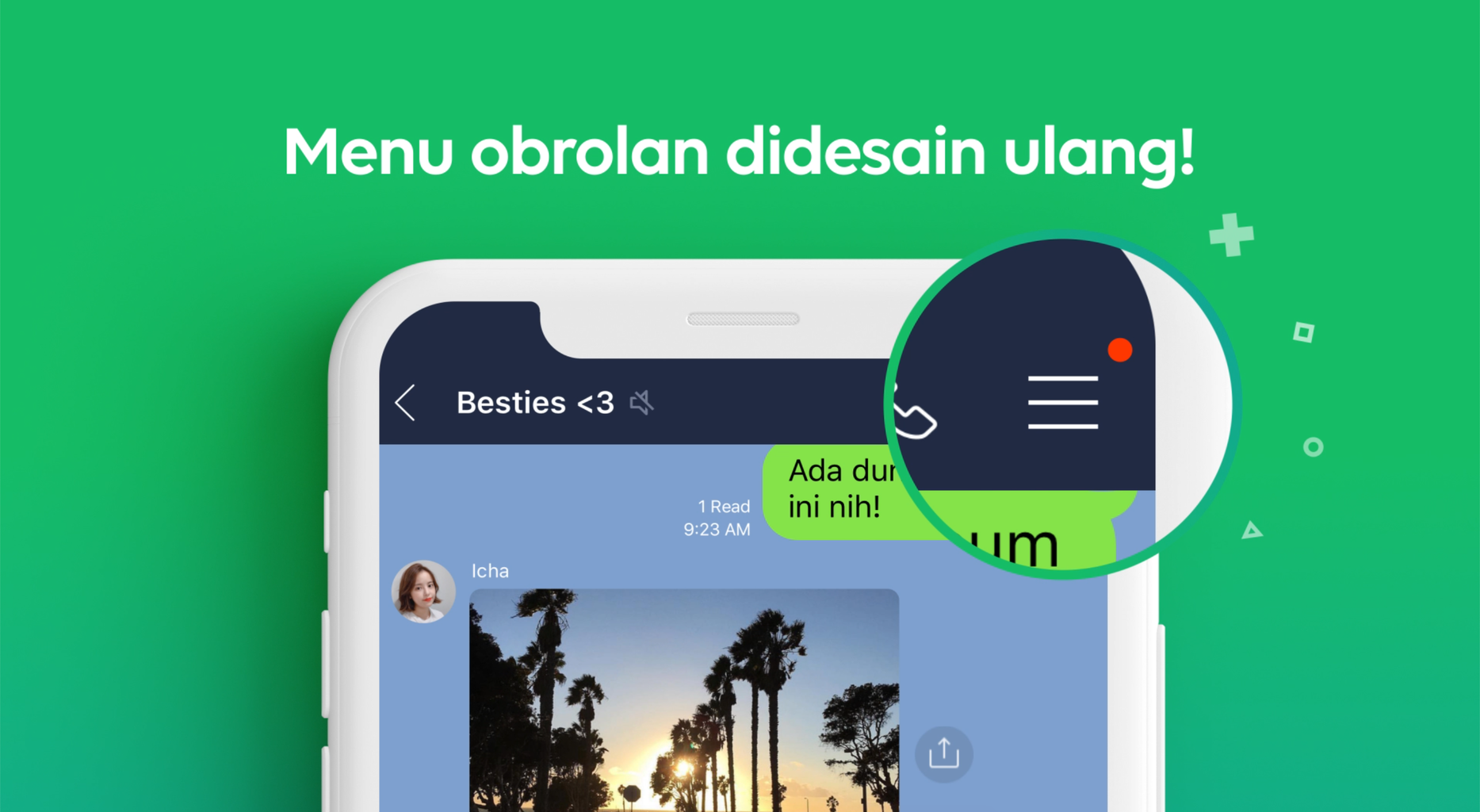 Kami punya kejutan untuk para pengguna setia LINE! Menu obrolan di LINE kini mengalami pemutakhiran dan hadir dengan wajah yang baru, lebih seru, dan lebih menarik! Menu obrolan sudah mengalami peningkatan, baik untuk iOS maupun AOS. Menu "hamburger" iOS sendiri telah berubah sejak tahun lalu. Kini, menu obrolan telah sedikit diubah dengan memasang ikon fitur yang paling sering digunakan.